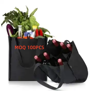 OEM Custom Reusable 4-6 Bottles Divided Non-Woven Wine Tote Bag 100 Pcs Water Soluble Shopping Bag Carrier