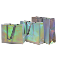 Sacola de presente não tecida laminada iridescente com logotipo personalizado sacola de compras holográfica para compras sacola de compras perolada a laser